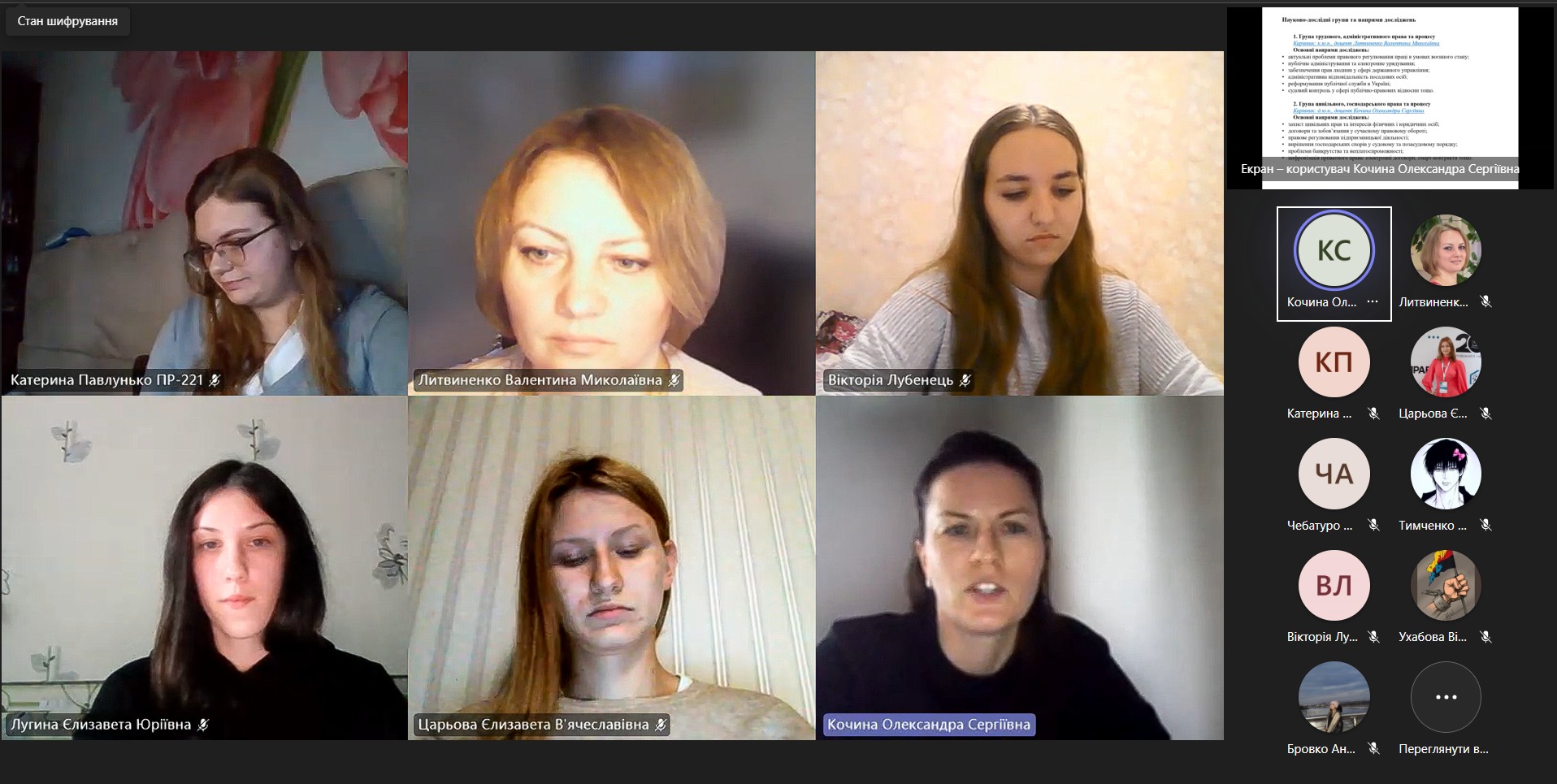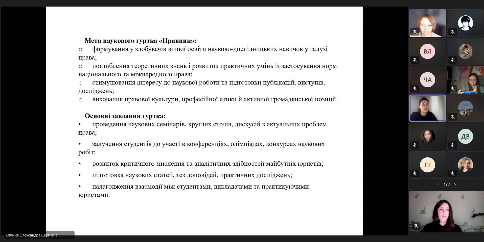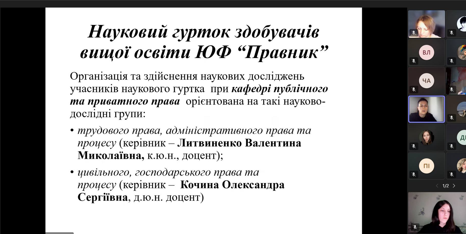 На початку місяця відбулося засідання наукового гуртка «ПРАВНИК» наукових напрямків кафедри публічного та приватного права