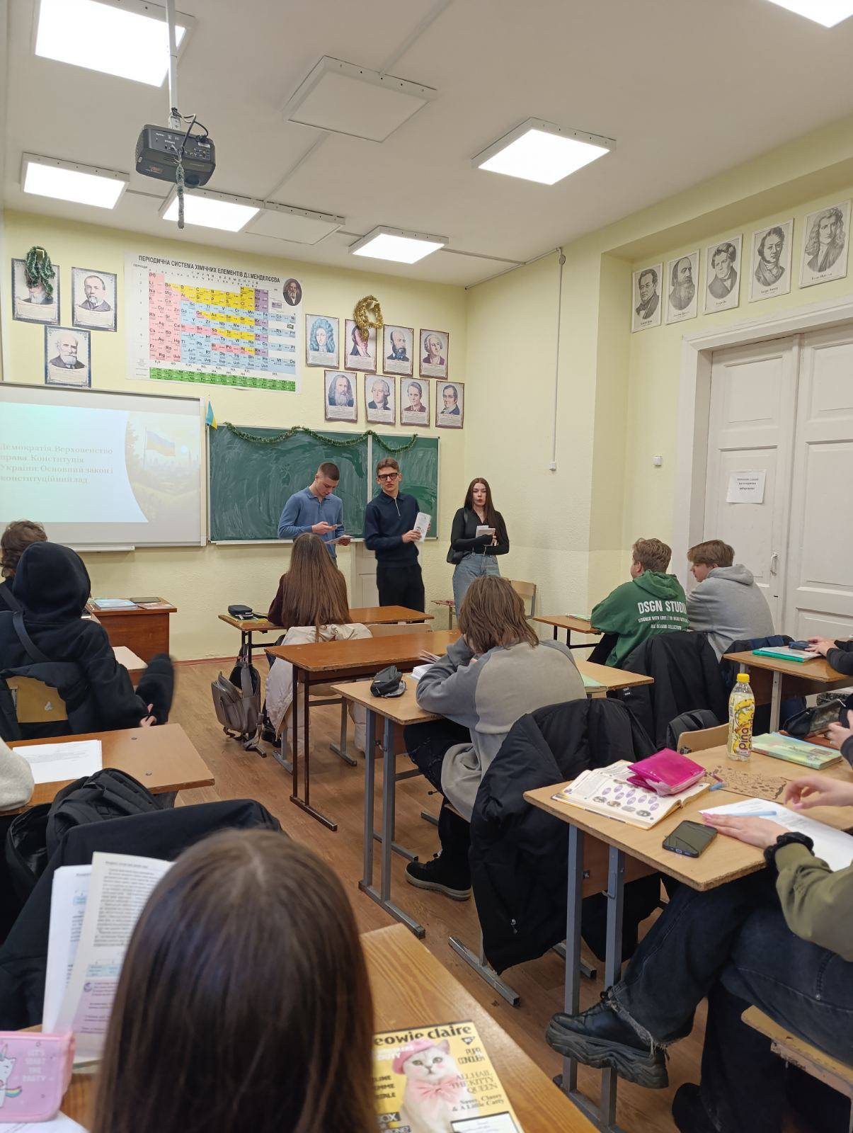 Особливий акцент під час заняття було зроблено на прикладних аспектах права. Школярі разом із консультантами аналізували реальні життєві ситуації, вчилися застосовувати конкретні положення Конституції України для захисту власних інтересів, а також розглядали права людини на практичних прикладах.