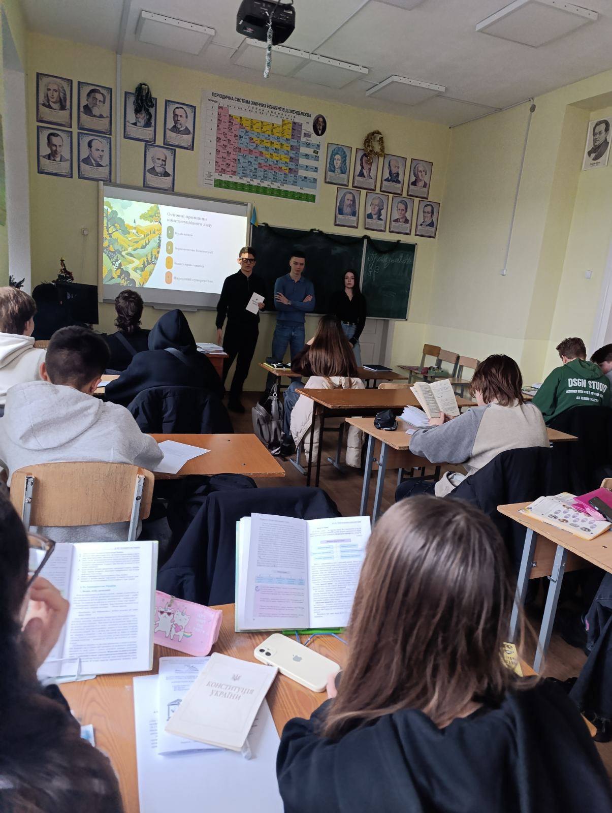 Окрім правопросвітницького блоку, важливою складовою зустрічі стала профорієнтаційна робота. Представники юридичної клініки презентували учням свій факультет, розповіли про особливості навчання та перспективи юридичної професії, що дозволило майбутнім абітурієнтам ближче познайомитися зі студентським життям.