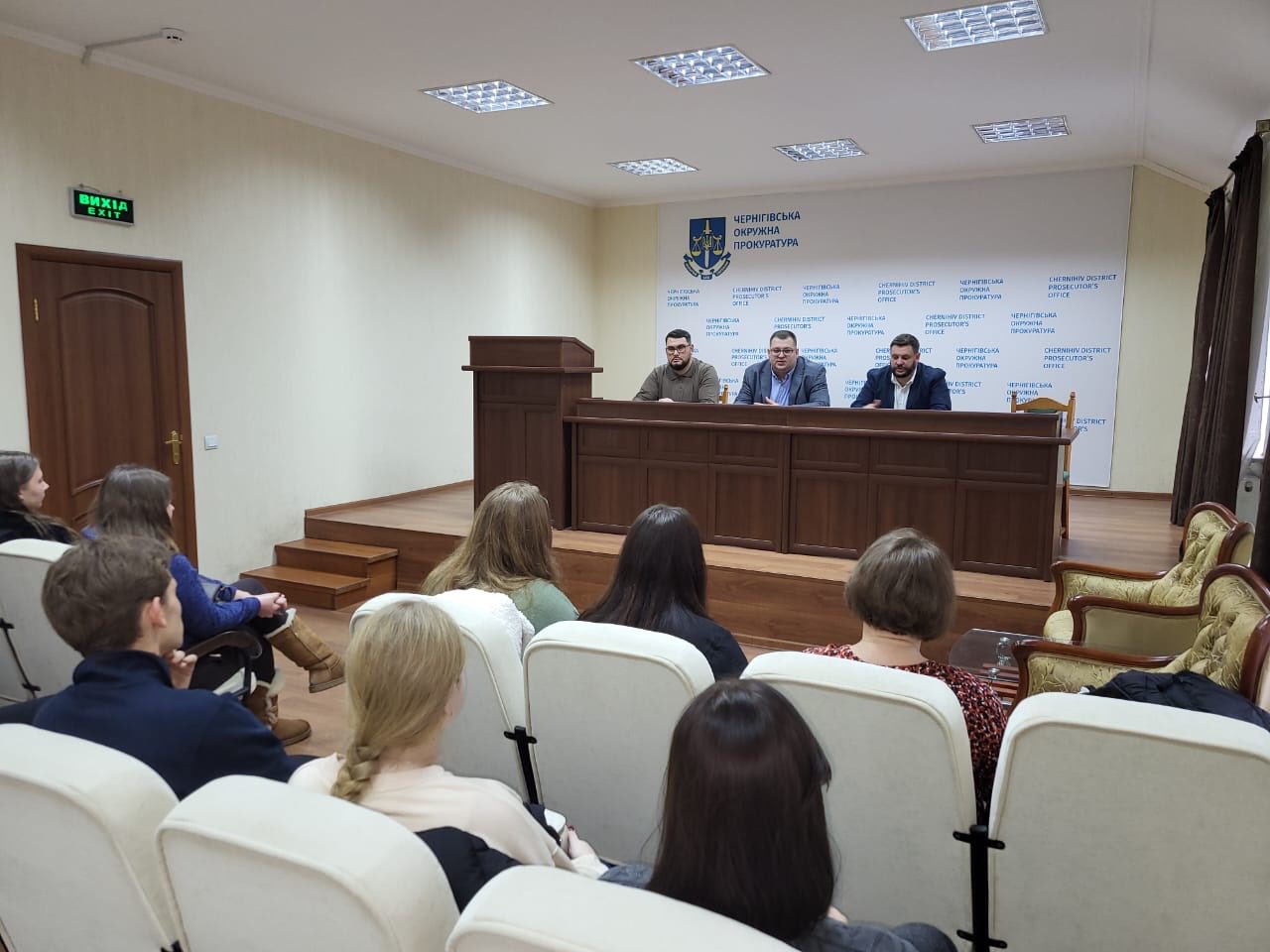 У зустрічі зі студентами взяли участь Олександр Сидоренко — перший заступник керівника Чернігівської окружної прокуратури, Михайло Шиленко — заступник керівника, а також прокурори Ігор Савицький та Сергій Хамайко.