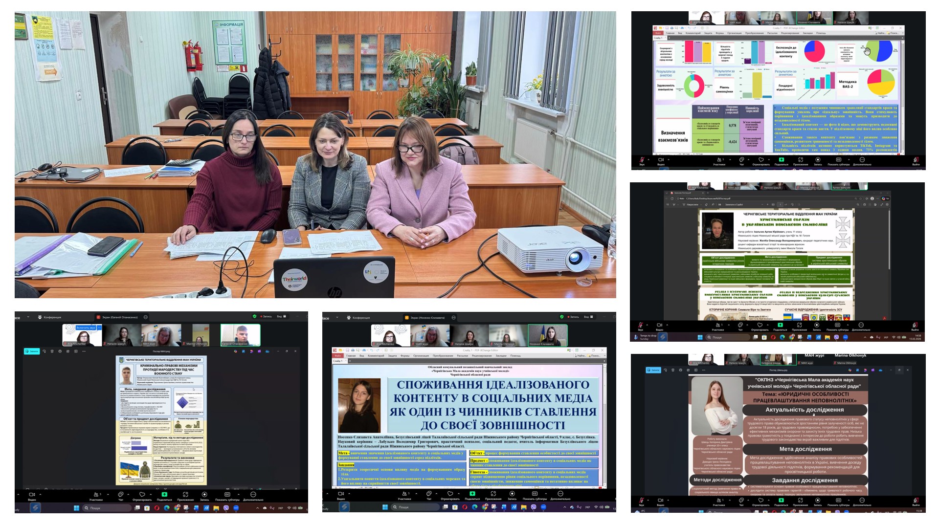 Оцінювання проходило у декілька етапів: заочний розгляд дослідницьких робіт, постерний захист (13.02.2026) та участь конкурсантів у науковій конференції (16.02.2026). Учасники продемонстрували високий рівень підготовки, глибину аналізу обраних проблем, системність викладу матеріалу, культуру академічного мовлення та впевнене володіння результатами власних досліджень.