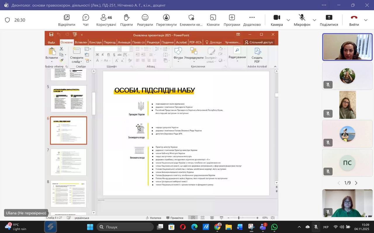 04 листопада 2025 року для студентів спеціальності «Правоохоронна діяльність» відбулася гостьова лекція Уляни Чучкевич на тему «Місія та досягнення НАБУ».