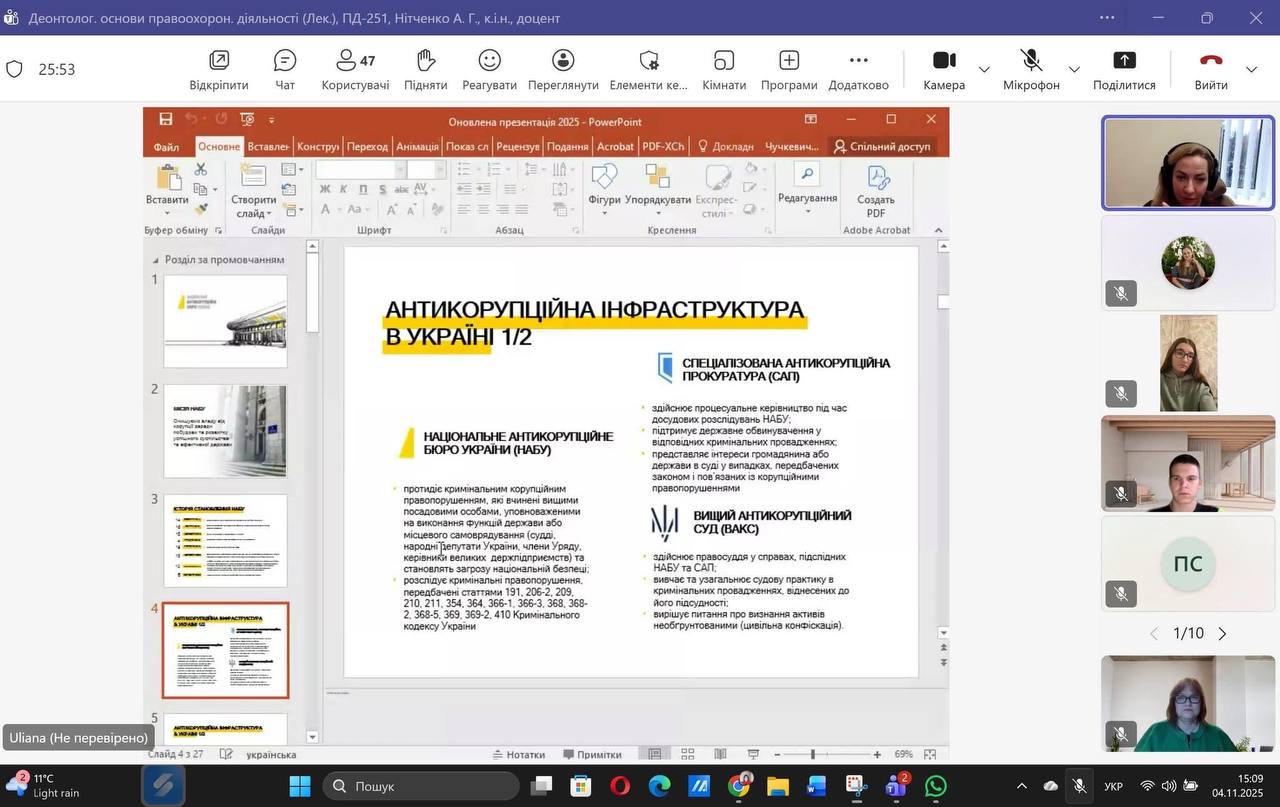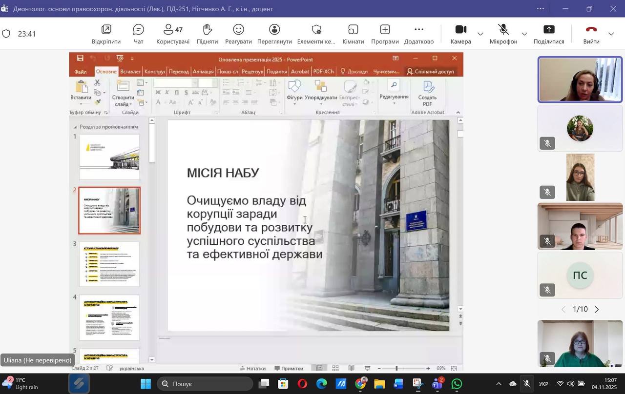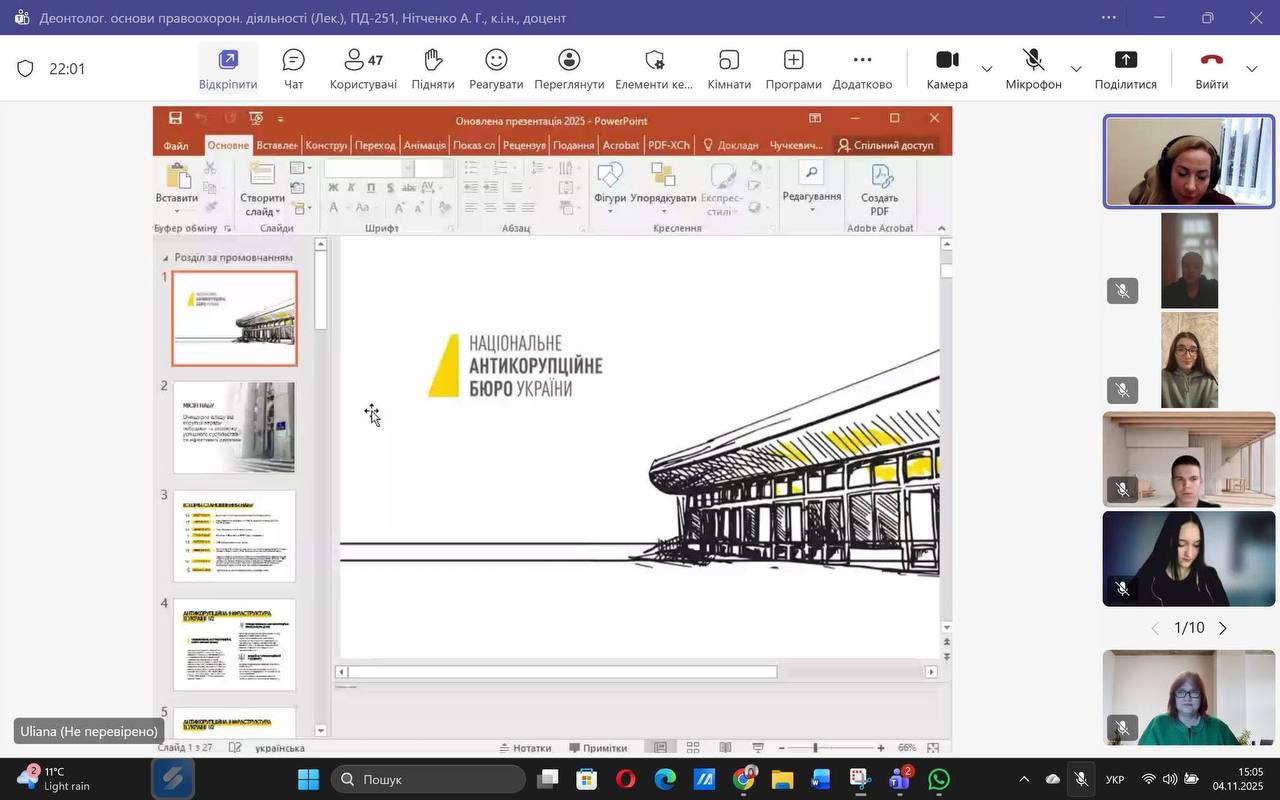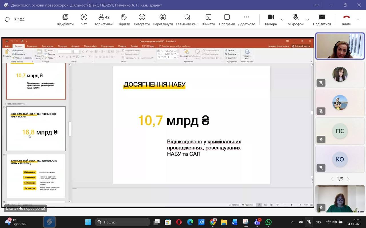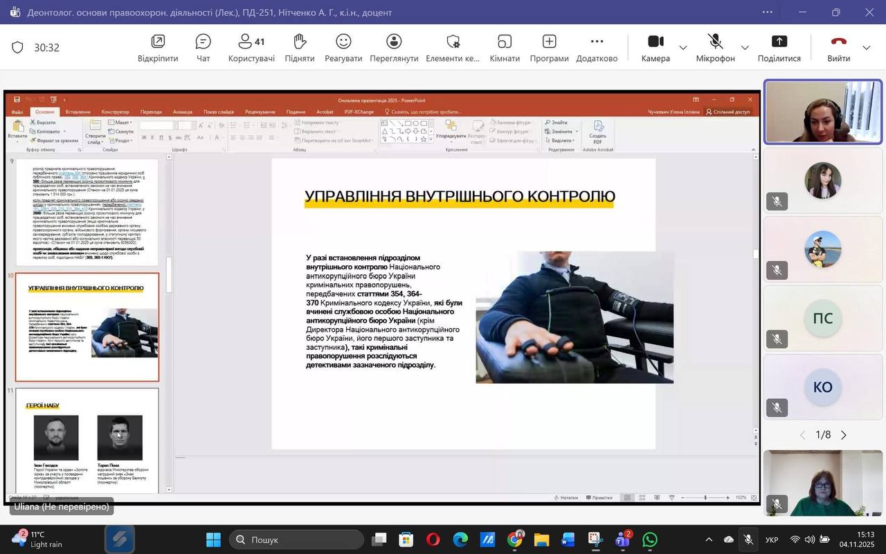 04 листопада 2025 року для студентів спеціальності «Правоохоронна діяльність» відбулася гостьова лекція Уляни Чучкевич на тему «Місія та досягнення НАБУ».